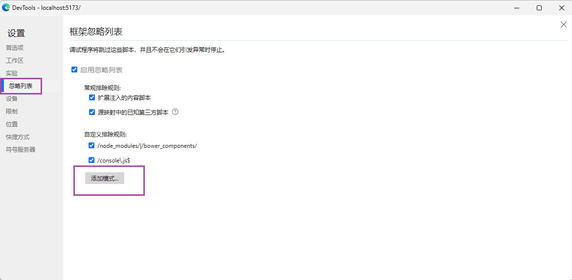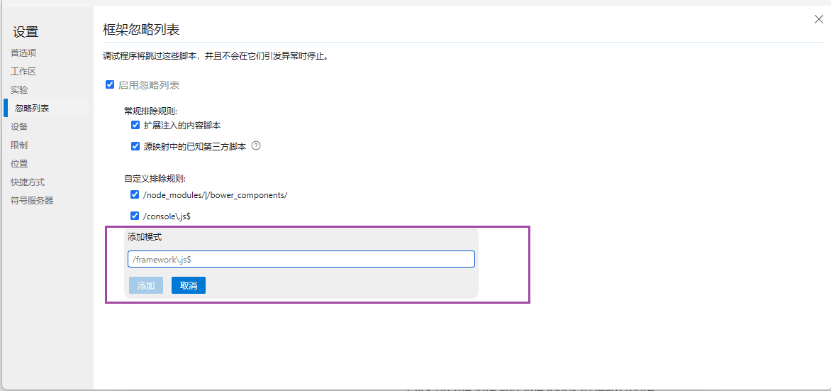 配置浏览器器Ignore List