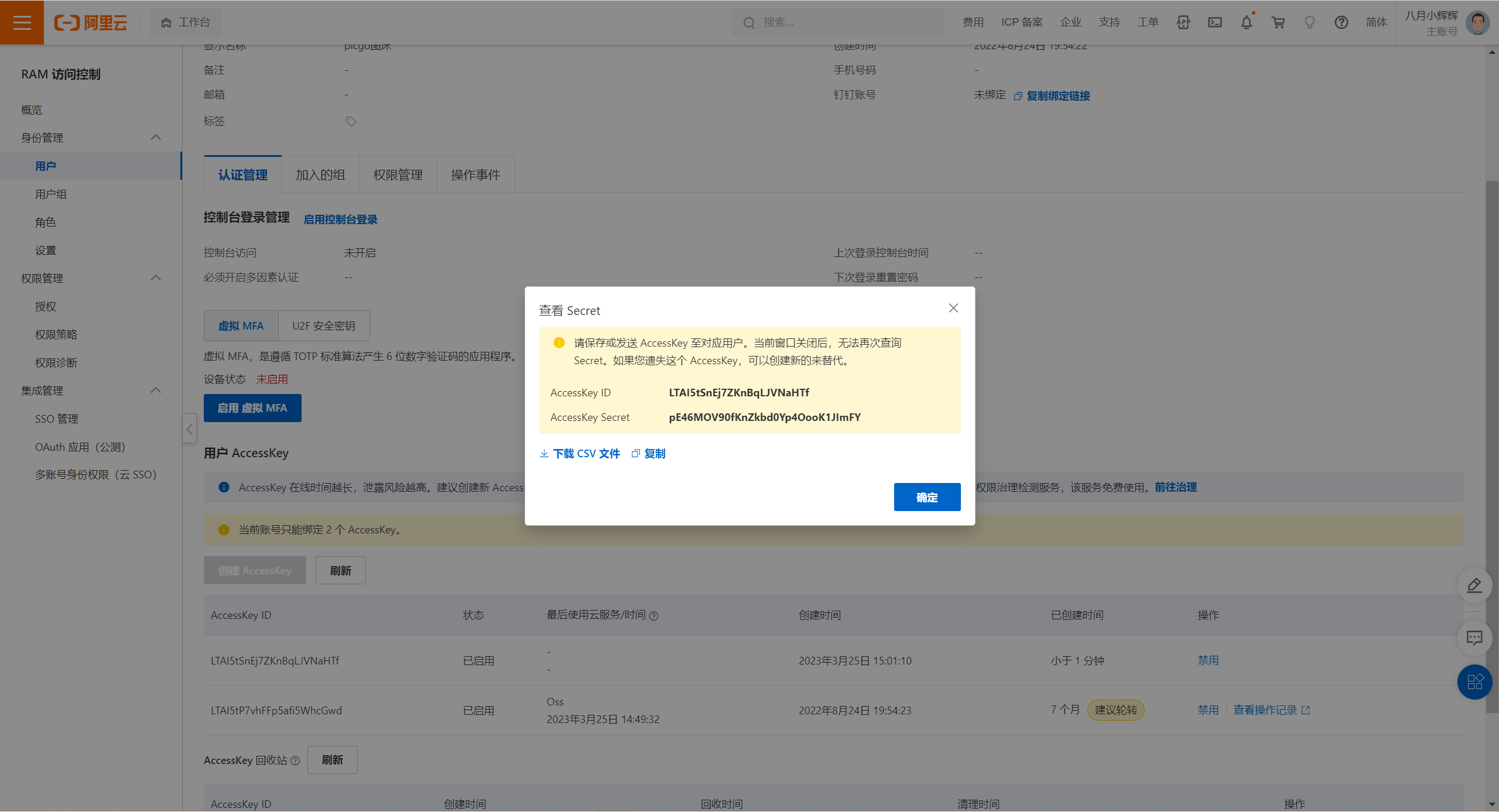 accessKeyId 和 accessKeySecret